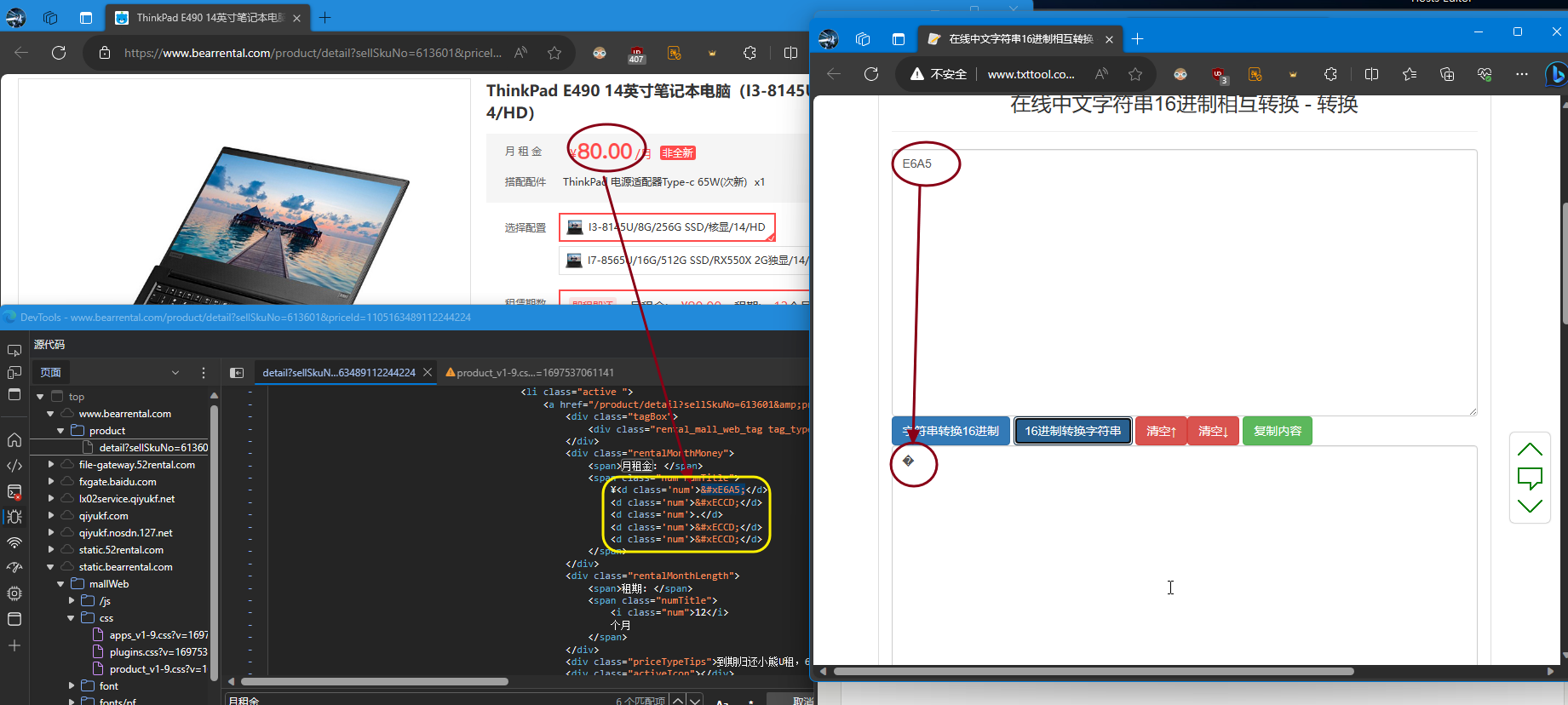到源代码中查看,发现价格用的是字符实体(即开头),那么把价格最高位拿去转化一下看是什么结果